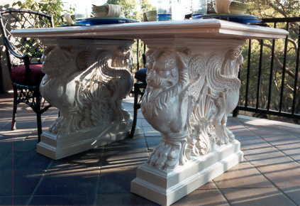 array of mythological figures, beasts, gargoyles, cherubs, scrolls, and